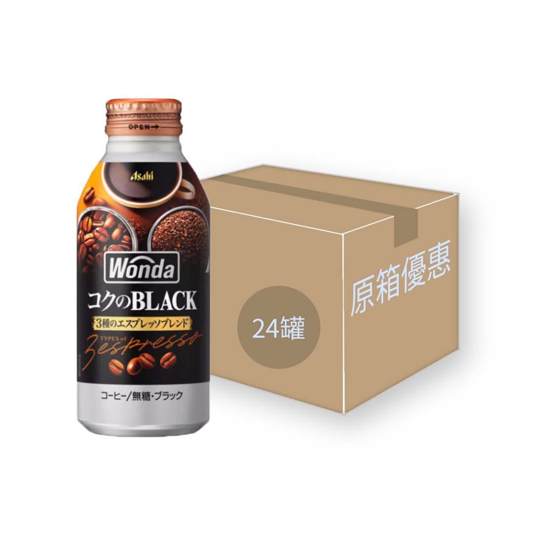 朝日Asahi - Wonda深煎無糖黑咖啡400ml x 24罐 [原箱]
