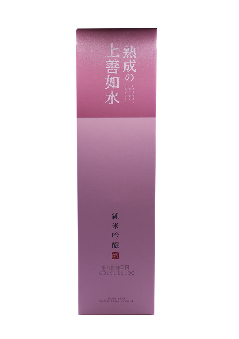 【粉紅樽上善如水 純米吟釀】, 釀造後在低溫下緩緩熟成1年;淡淡的芳醇微酸,讓飲用者沉浸在深邃口感、芳香甘甜之中。內斂芳香、滑順美味與舒爽微酸的完美中和。