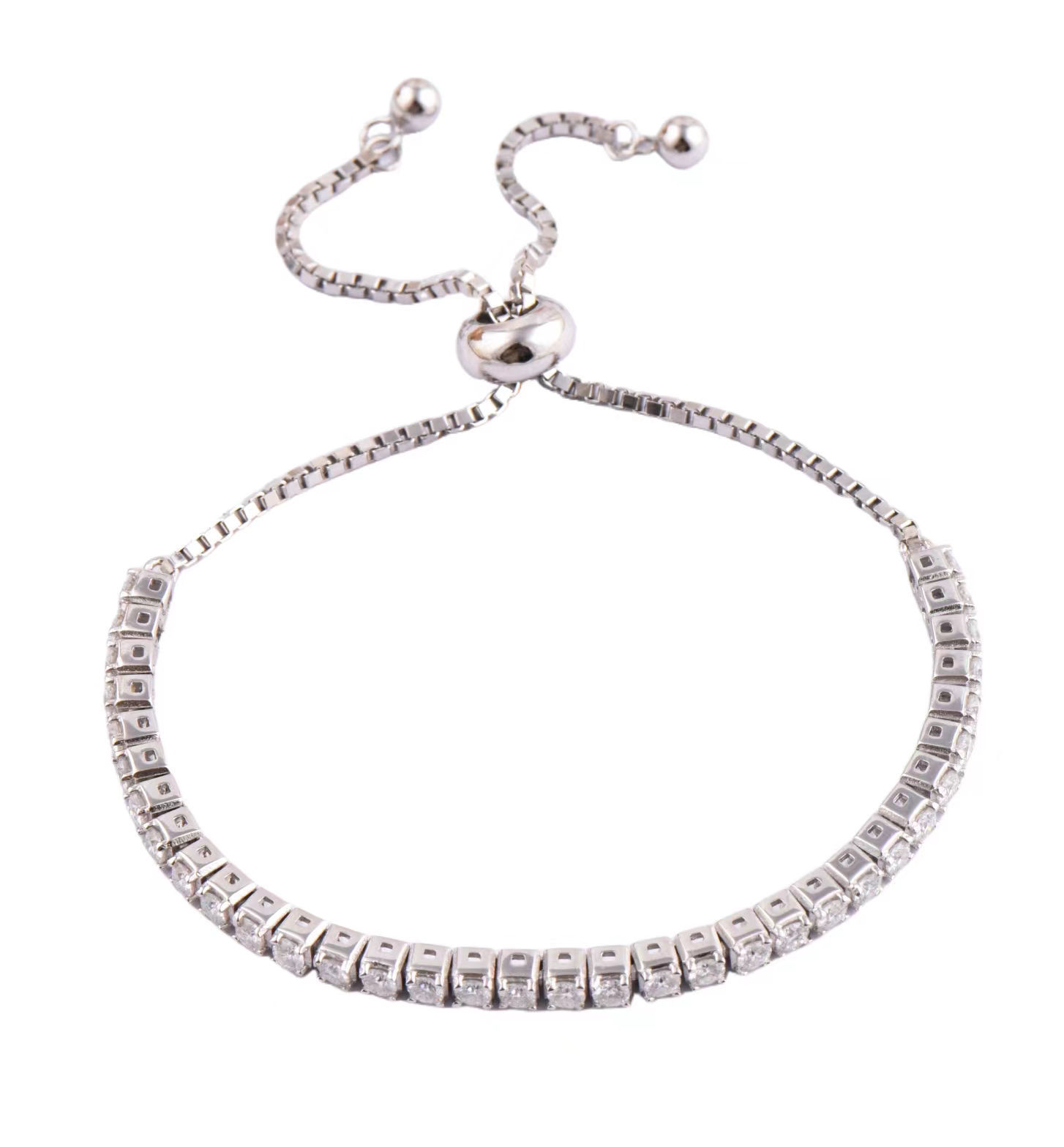 這款經典的純銀網球手鍊適合白天和夜晚的場合。這款造型精美的手鍊以獨特的設計密鑲璀璨奪目的透明莫桑石鑽石。可調節滑扣完美貼合您的手腕形狀。無論是搭配還是單獨佩戴,都散發著摩登優雅的氣息。* 編號: BS924S-2* 種類: 手鏈* 材質: 925 純銀* 配石: 白色皓石* 顏色: 銀色* 呎吋: 吊咀:13mm, 鏈長: 17.5cm 配滑扣* 防過敏* 防水