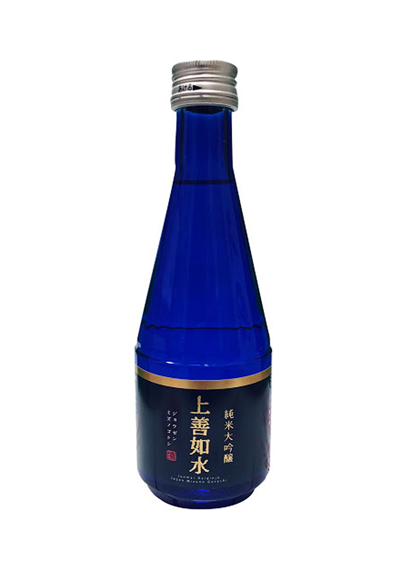 【藍樽上善如水 純米大吟釀】 是在上善如水中最高的品質,只用米中最純粹精華之部分釀製。華貴香氣內蘊於深層,口感值得再三吟詠。承繼上善如水之名,集全般洗煉極致於一身。口味醇厚辛甜, 華麗芳香氣。