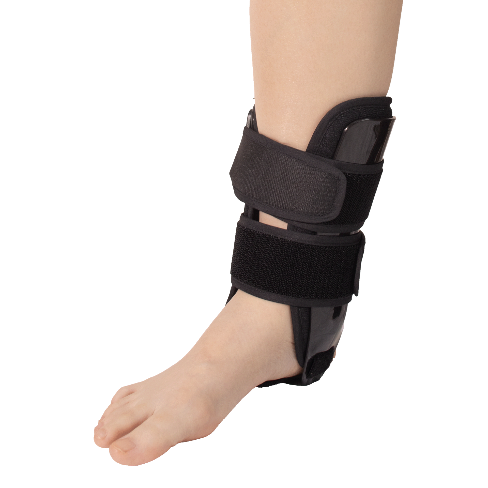 A09 馬蹬式足踝固定護具 採用馬蹬式結構設計,內置成型內外側膠板及腳底連結支撐,有效穩定足踝關節。配備柔軟海綿內墊及快速鬆脫插扣,穿戴方便舒適。上下兩條橫帶加強固定,限制足踝內外翻,同時避免影響血液循環,提供安全穩定的支撐效果。適用於治療一級、二級及三級足踝扭傷(拗柴)(包括有腫脹情況)、足踝扭傷、穩定性骨折、韌帶撕裂。