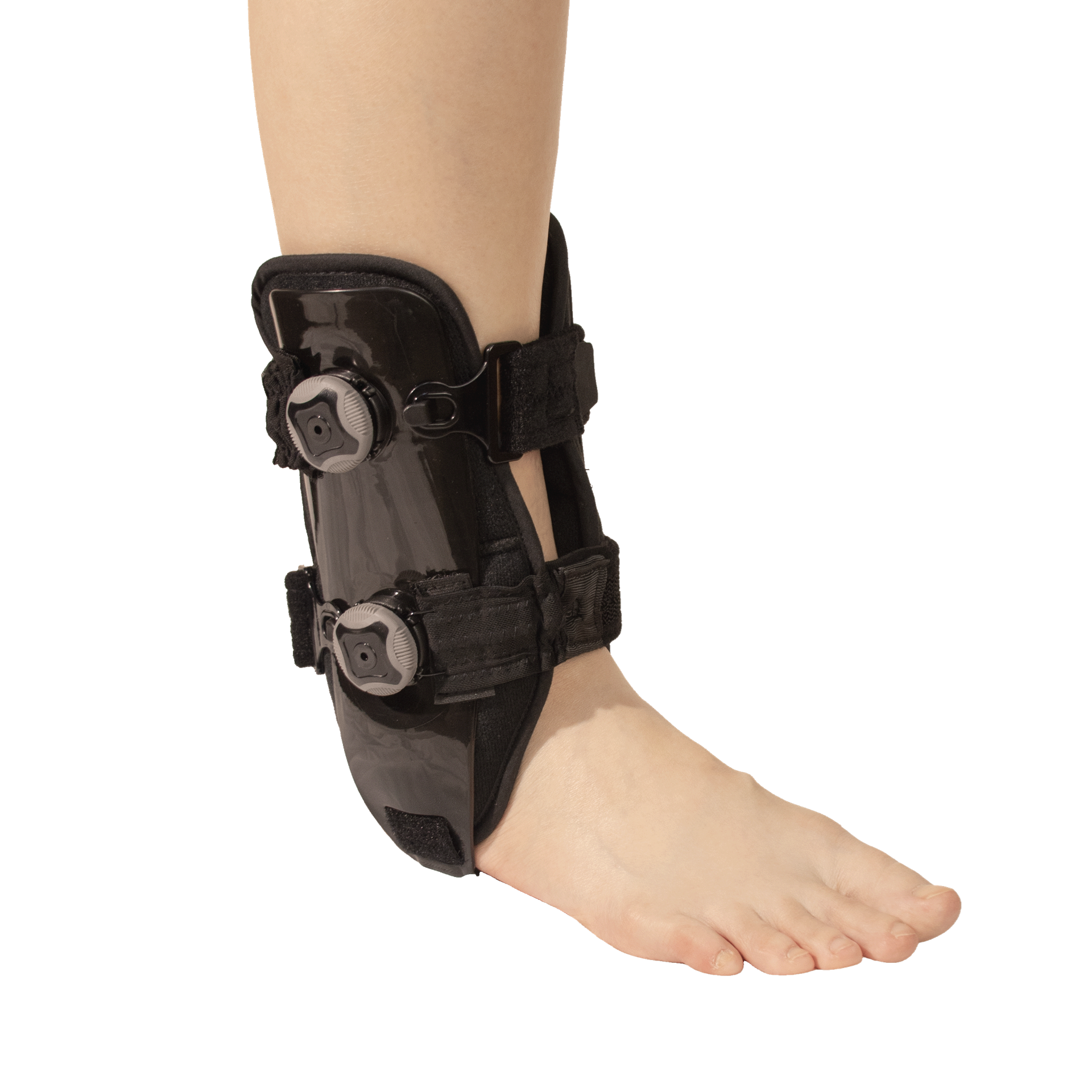 A09b 馬蹬式足踝固定護具(護踝)- 採用馬蹬式結構設計,配備拉繩微調固定器,可自行精準調節鬆緊度,內置成型內外側膠板,配合腳底連結支撐及柔軟海綿內墊,有效穩定足踝關節並提升佩戴舒適度。適用於治療一級、二級及三級足踝扭傷(拗柴)(包括有腫脹情況)、足踝扭傷、穩定性骨折、韌帶撕裂。