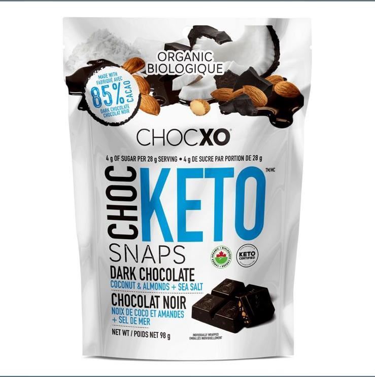 ChocKETO Snaps由最新的85%可可(細味可可豆)巧克力製成,由於豆子的獨特來源,其風味令人讚嘆。 產品已經將糖減少到了全部成分的15%。 我們的每一種Keto產品均經過第三方認證,符合KETO標準。 為了符合Keto要求,“零食”部分必須包含少於6克的總碳水化合物。 通過將巧克力中的天然蔗糖含量大幅降低至僅15%,我們處於Keto限制範圍內,因此可以在我們的ChocKETO Snaps的最多兩(2條)中隨意享用零食,並且知道自己保持了這種狀態 您的糖和碳水化合物的攝入量降至最低。烤杏仁和椰子的天然特質,加少許鹽,全部與我們富含85%可可含量的有機黑巧克力混合在一起。
