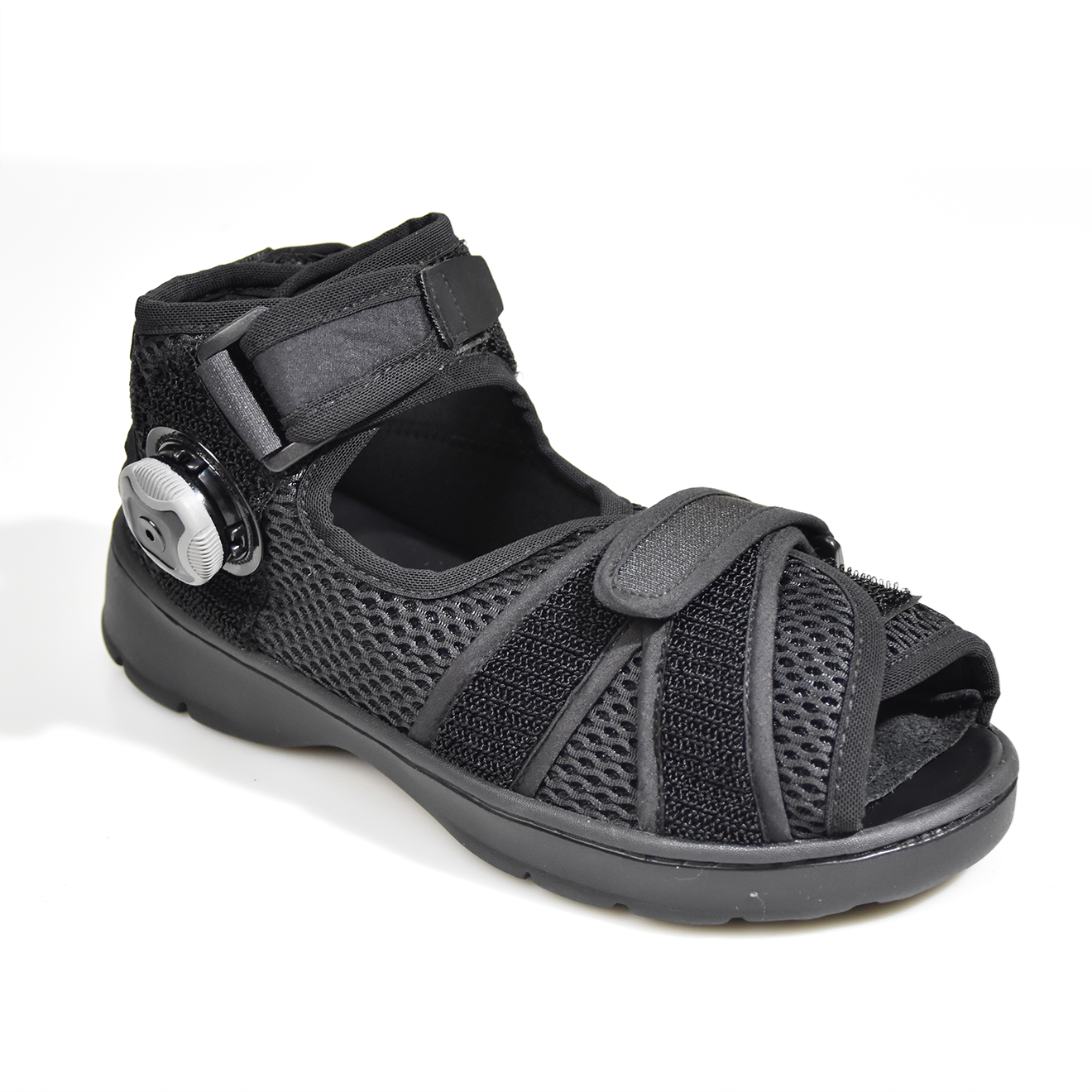 可外出走路時,糾正拇趾外翻的矯形鞋。產品設計外觀與普通涼鞋無異,但內藏糾正拇趾外翻的設計。把拇趾套入拇趾套內,並收緊拉繩器,利用3點矯力,糾正拇趾外翻。 而且鞋墊有拱形設計,同時保護足弓健康。