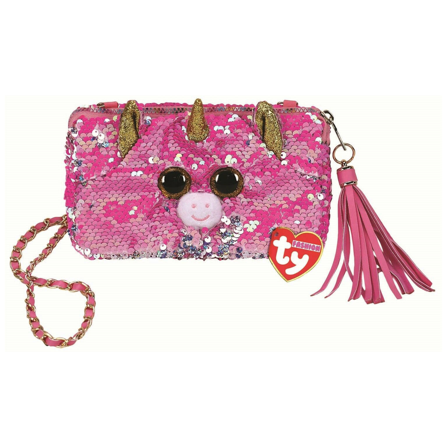 華麗時尚的Beanie Boo方形單肩袋,採用變色可翻轉亮片物料。向一個方向滑動它變成一種顏色,向另一個方向滑動它變成另一種顏色!
