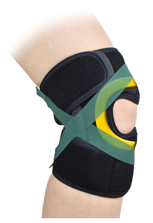 - 髕骨外置有一半月形半硬EVA阻止髕骨外脫