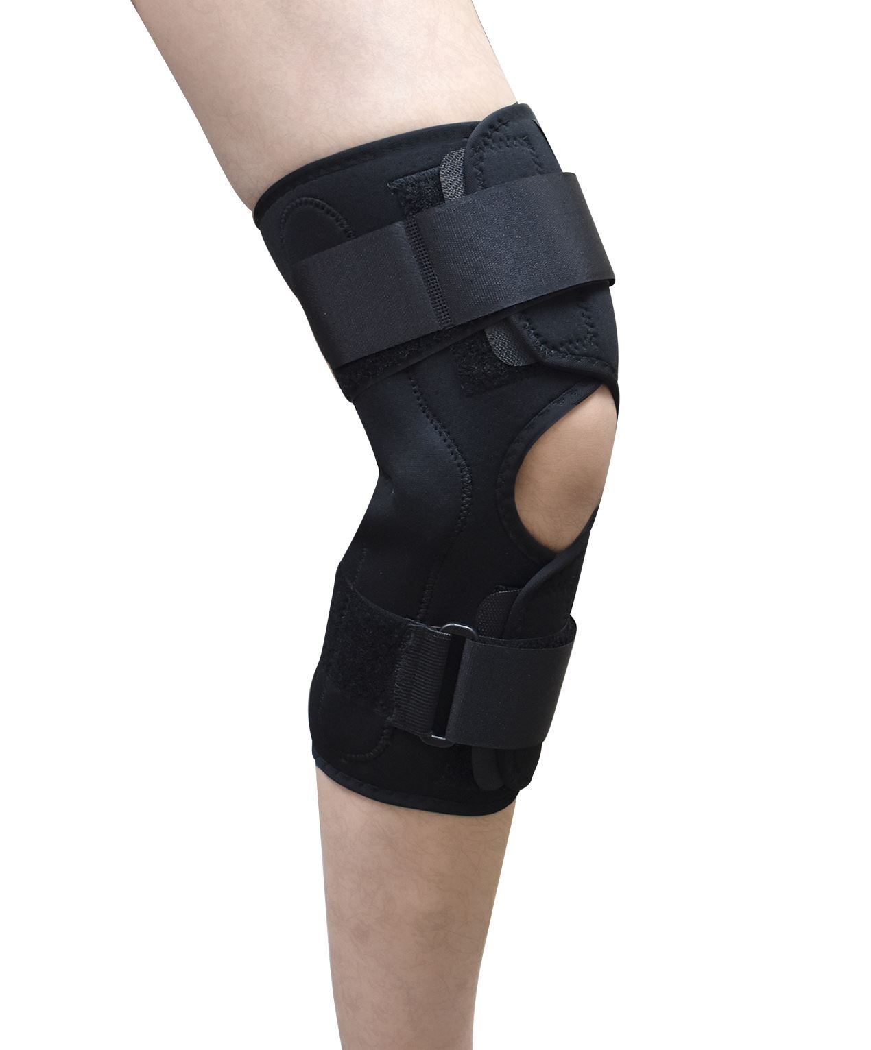 - 橢圓型髕骨墊,兩側鋁鉸鏈上下壓力粘扣帶可收緊固定鋁條尺碼: (膝圍)