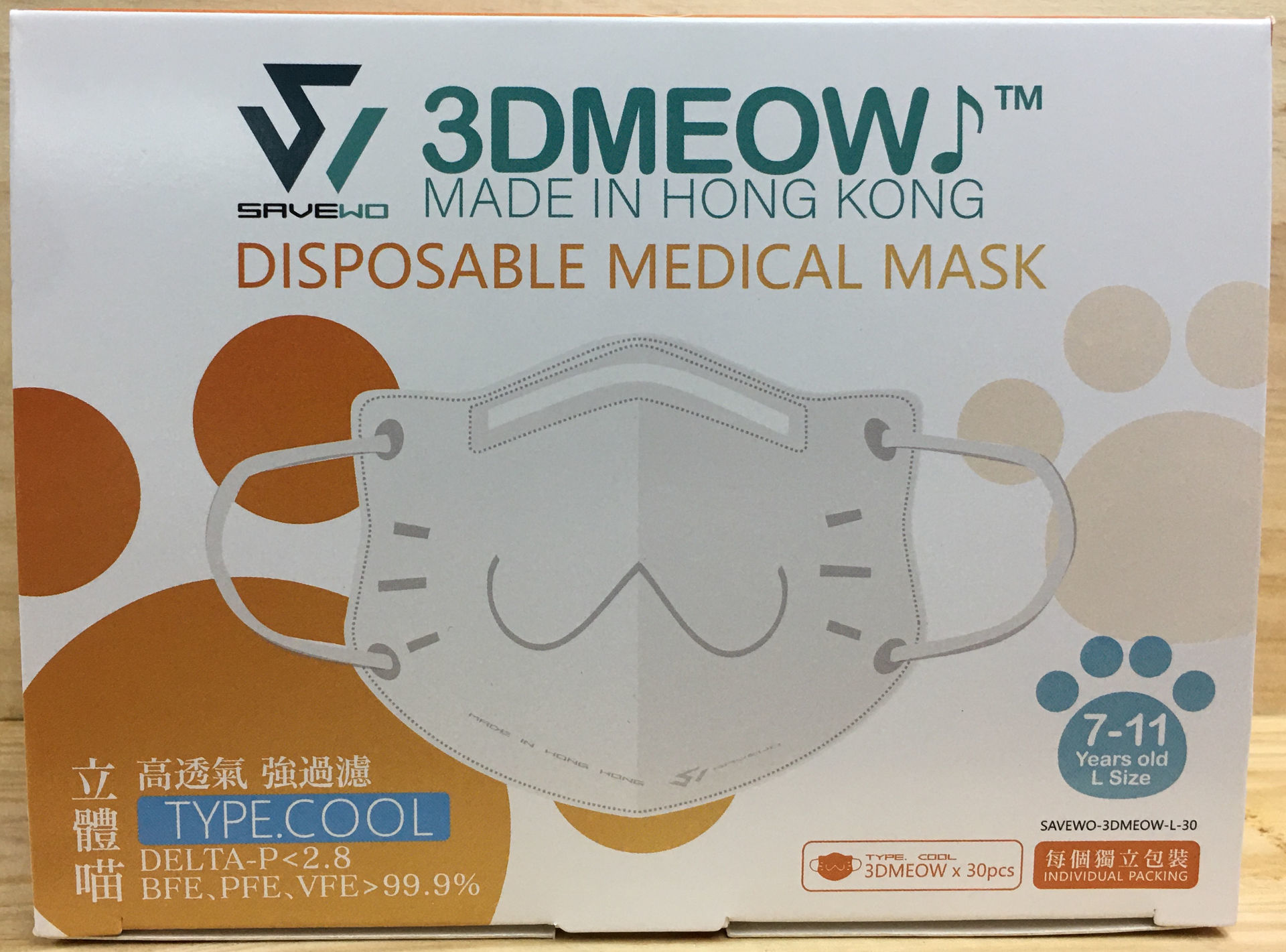 SAVEWO 救世3D MEOW 立體喵 小童口罩 (大碼)